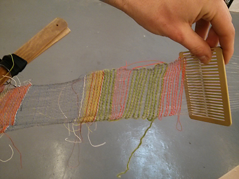 Penny Seume – Liked choosing the colours, really difficult remembering which way to hold heddle (up or down) (8/12/13)