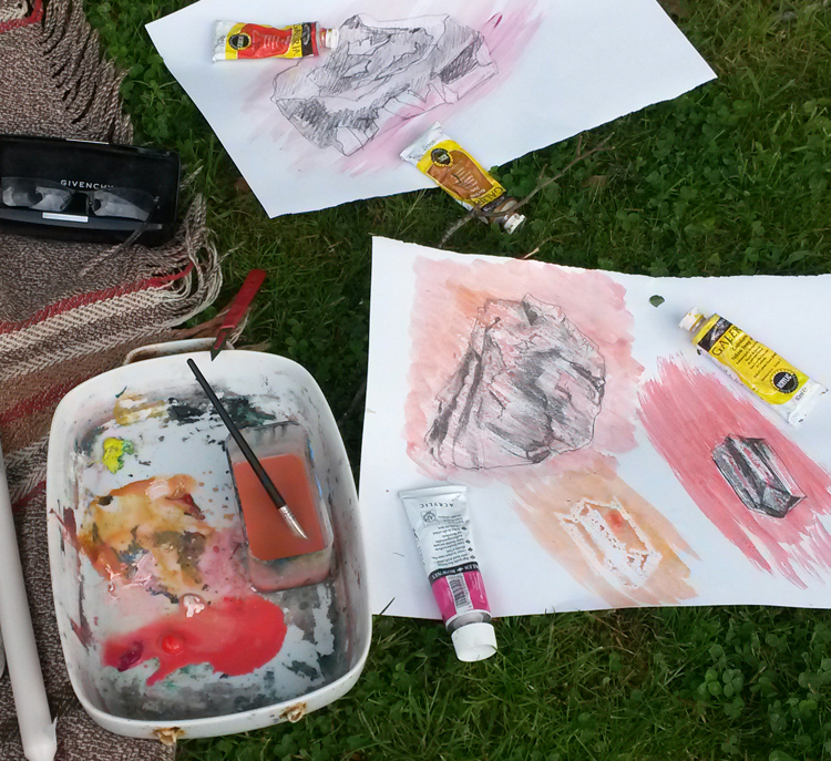 I am interested in the fragile nature of the pencilled image and intend to capture a drawing using eco-resin. The use of wax for imagery, inspired by Henry Moore’s waxed textile designs, will use rose quartz. Working on the theme of protection, I have chosen to use rose quartz which, amongst other things, can neutralise geomagnetic stress – frequencies that come to the surface of the Earth due to a variety of factors; one such being underground streams (dark streams). The frequencies can be in the microwave region so are known to have a detrimental effect, especially if you are sleeping over them. Rose quartz placed under your bed can alleviate symptoms and returning to the sun, crystals can be cleansed by placing them in the sun.