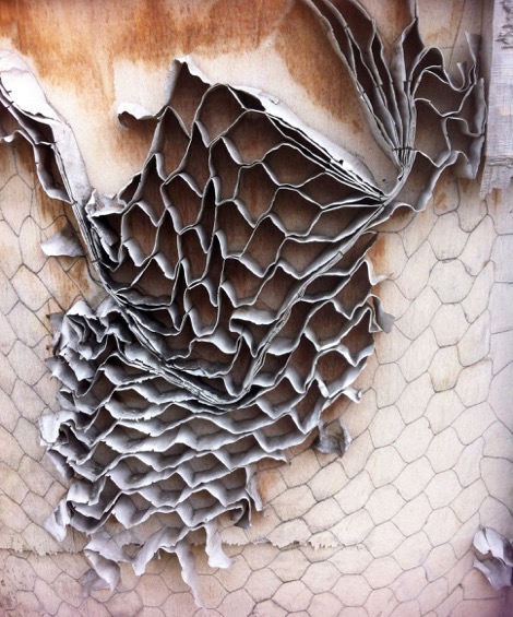 I’m interested in different methods of construction for my shift dress and particularly ways to maximise the glowing cut edges of the vinyl. So this distorted honeycomb board will be a starting point for this when I get to the sampling stage next month