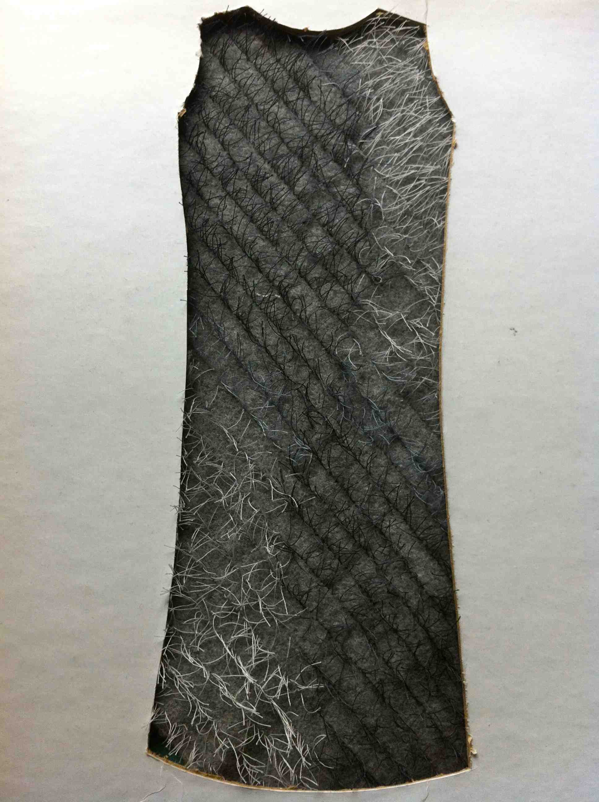 The next stage for me will be to scale up some of these ideas and drape some of my existing fabric over a mannequin to see what the cosy, tufted threads look like on human shape.