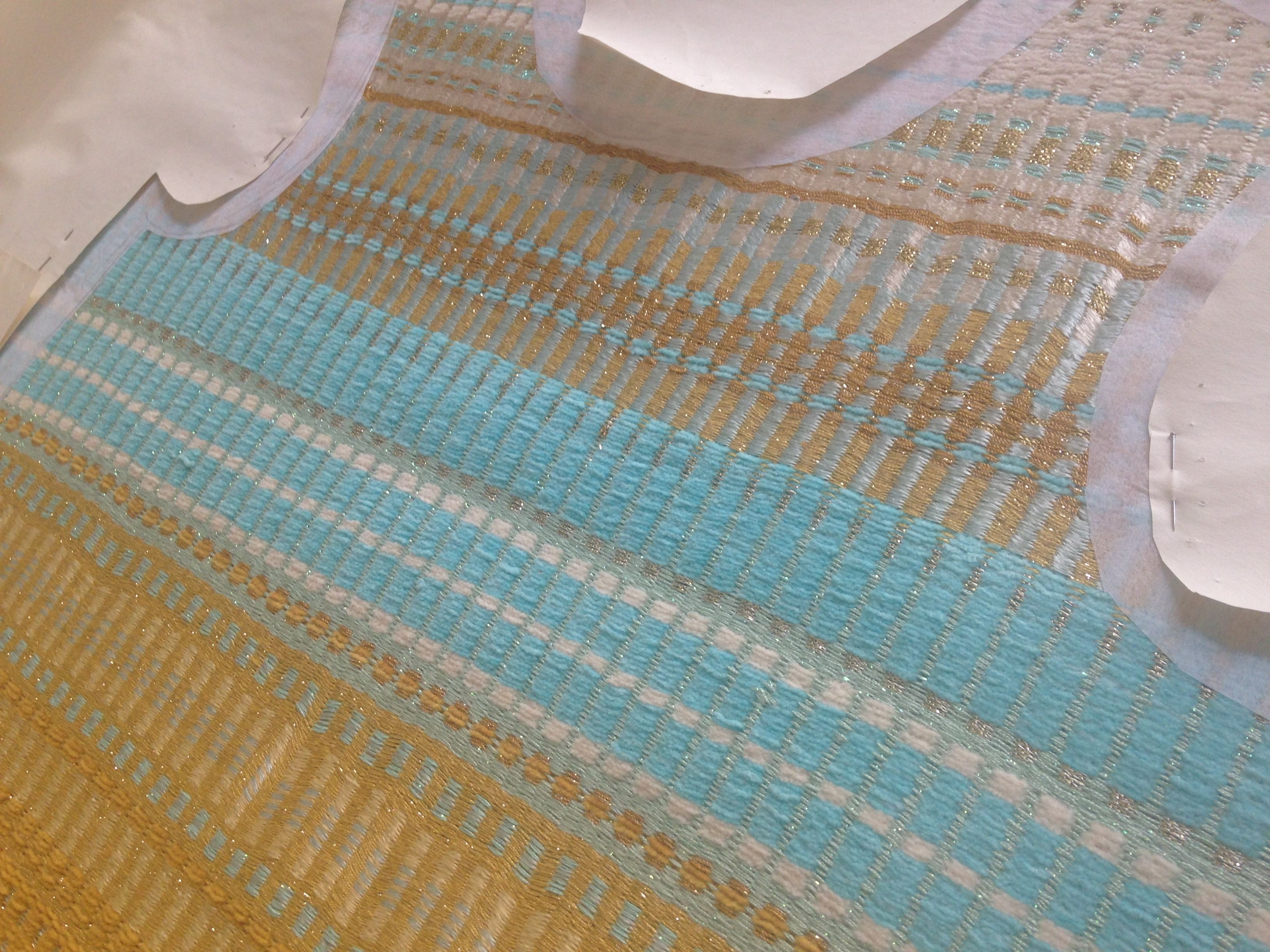 I tried to keep to the recommended time allowance when turning my indulgent handwoven fabric into a shift dress. (1 day). Cutting into the fabric had been my biggest concern from the onset. I still wasn’t entirely how the structure of the weave would be effected when cut, as my samples had been on a smaller scale.