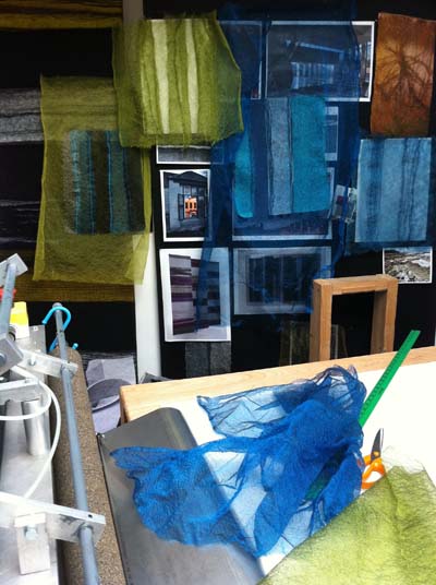 I now have a lovely warm, bright studio to work in. My favourite textile machine at the moment is the needle punch, which has a bed of 2,000 needles. It blends and distresses layers of fabric in very exciting and sometimes unpredictable ways, as I learnt by trial and error! Experimentation is what I most enjoy.