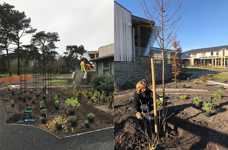 St Peter’s Hospice sits within a lovely expansive garden which is surrounded by well-established Scottish Pine trees. This was the initial inspiration for my designs. From the research I carried out, it was clear the garden was a very important aspect of the Hospice and in fine weather it is frequently visited by staff and patients alike. The way in which KKE Architects have designed the new hospice fully embraces the lifestyle concept of ‘bringing the outside in’.