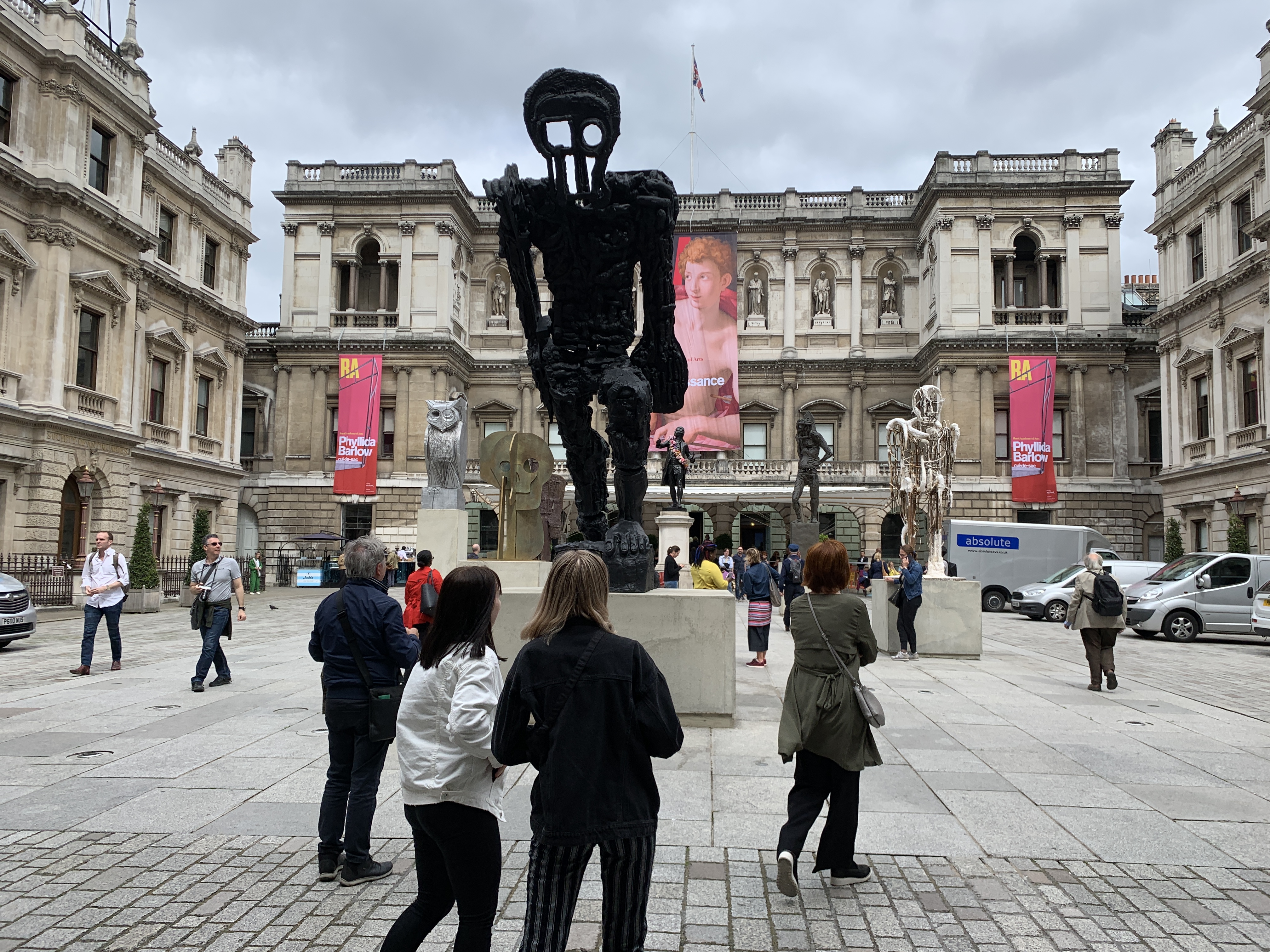 The courtyard was filled with towering and imposing Thomas Houseago sculptures as a welcome party. The procession to St James’s church with a special service followed, then back to the Royal Academy to see the artwork hung for the first time.