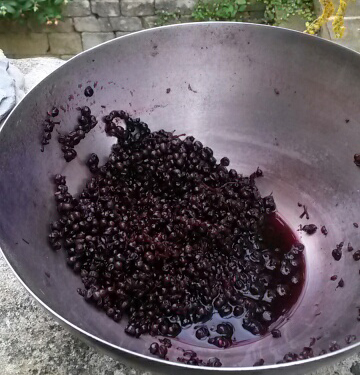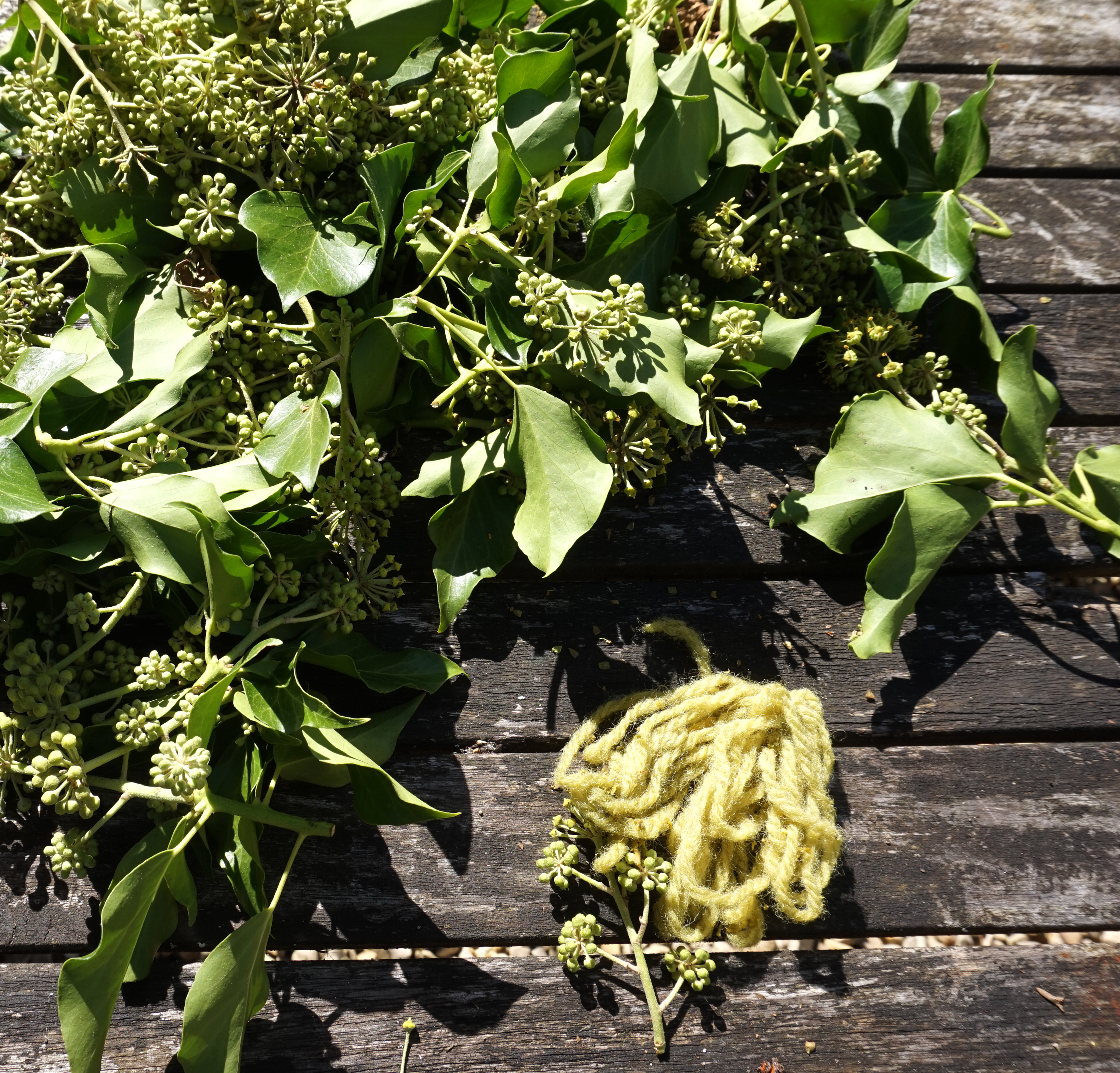 Now the autumn is here, after making wine and vinegar, I am experimenting with the left over elderberries that yield vivid crimson, together with ivy and hawthorn.