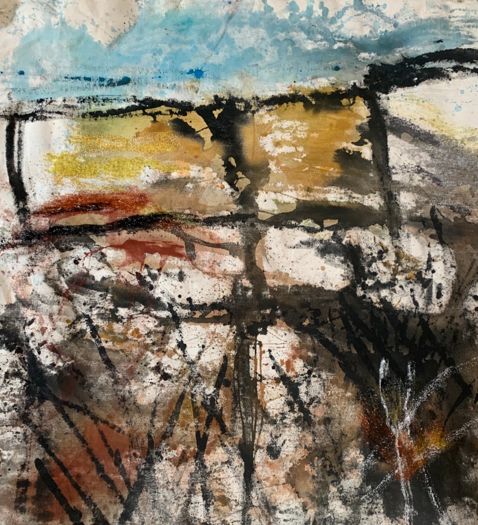 My style developed over 2020 and with a move to Cornwall in the pipeline I wanted to connect more with the Cornish landscape. In February 2021, I enrolled on a wonderful pre-recorded online course ‘Abstracting the Landscape’ with Anita Reynolds at Newlyn School of Art.