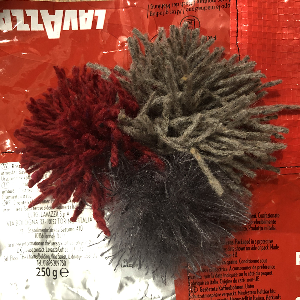 To continue the experiment, I made some yarn windings varying the quantity and placement of each colour as well as changing the background card from light to dark.