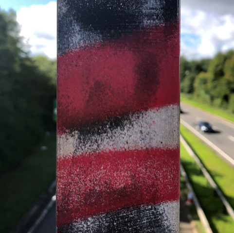 Returning to the images of the damaged street furniture I started to make a small free machine embroidered drawing. However, the colour red felt as if it needed a different approach.