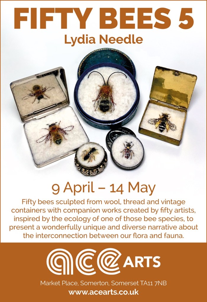 To see more of my work you can follow me on Instagram @lydianeedle, and come and see FIFTY BEES 5 at ACEarts, Market Place, Somerton, Somerset, TA11 7NB from Saturday 9 April until 14 May.