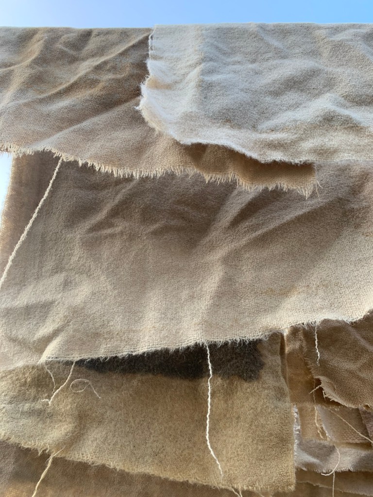 This work continues in my home studio, working my thoughts into experiments around reframing waste. I use scraps of cast off fabric, packaging waste and inedible food scraps.