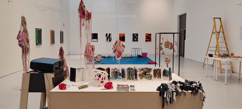 TEAM SEAM: Being able to work alongside one another in real space has been the best thing so far. We have four new members and some of us have only met online, so meeting and making side by side has been so good. Over the last week we have been working together in different ways – there’s obviously been some setting up and problem solving, but also lots of stitching, weaving, ripping, wrapping, knotting, skill sharing, conversation, emerging ideas…. and plenty of laughter!