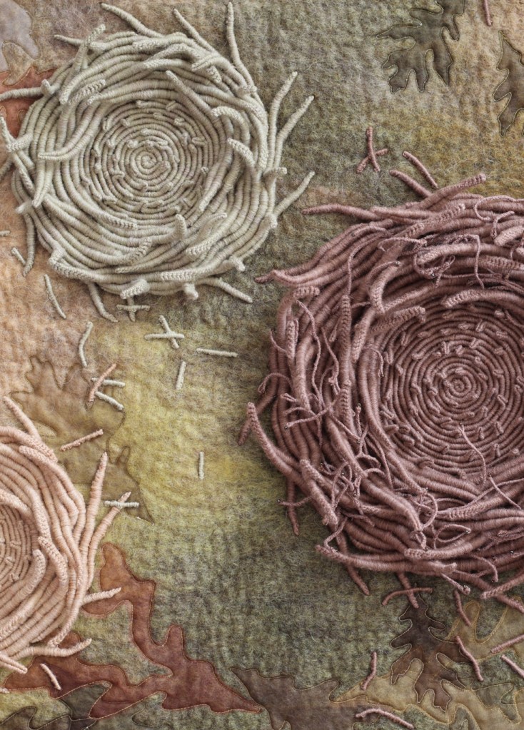 This weekend 17 / 18 Sept at the gallery, I will be teaching a workshop on Felt Lace combining felting with hand and machine embroidery techniques. If you fancy joining me, you’ll find more details and how to make a booking here.