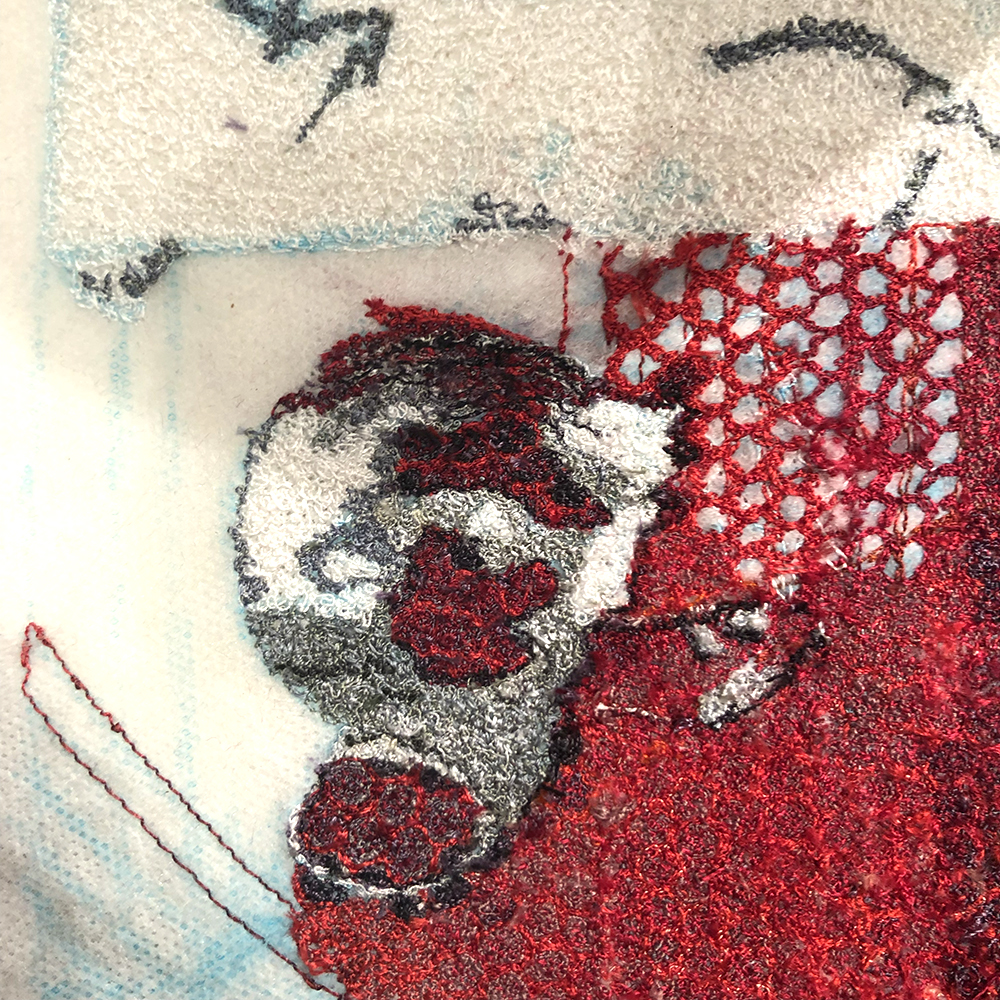 Our first module was colour and hand embroidery. I am not a hand embroiderer, and I am not a designer, so choosing a colour palette and using it to influence hand stitch proved challenging. With a love for things unnoticed, unwanted and lost, I was drawn to working with abandoned materials. Having already, established my practice, it was difficult to find a new direction and I struggled with my identity as an artist.
