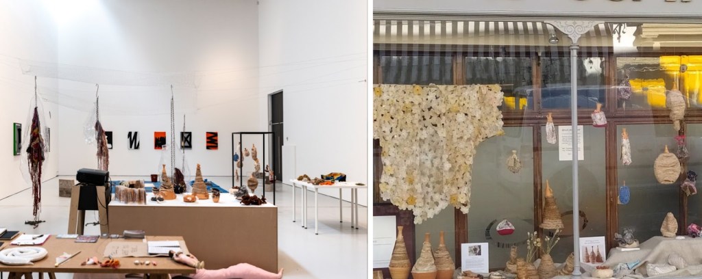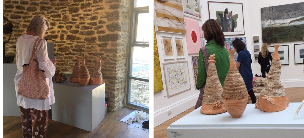 The partnership with Joy broadened my outlook and opportunities to show work. Joy has a wide circle of professional contacts in Somerset and beyond, and I have felt the benefit of her abilities to develop networks. Both Joy and I have developed our own sense of how materials and forms resonate together for successful practice-based work, but having the approval of galleries and creative bodies does raise the level of feedback, and gives a connection to a wider range of viewers. The textile community has been welcoming of our mixed-media work, for example our inclusion in the seam collective residency at The Andrew Brownsword Gallery, Bath. (I would like to test the response of specifically ceramic opportunities to our mixed-media work in the future.) The talk with Will Cooper (Curator of Contemporary Programmes for The Holburne Museum) coming out of this was instrumental in reframing our thinking about collaboration, so that we could enter exhibitions as a single artist would – a very important step that has led to exciting opportunities in 2023.