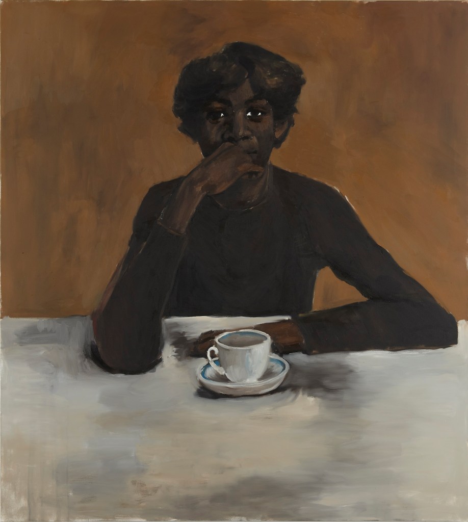 We were swept away by the stylistic beauty of Lynette Yiadom-Boakye’s portraits at Tate Britain. The poses were emotive and striking; my favourite image was No Such Luxury 2012. A captivating example with a female figure hiding her full expression with one hand, whilst her other hand is lying flat on a table next to an empty teacup.