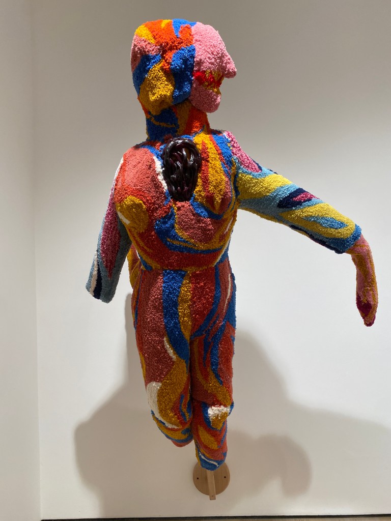 Having researched cloth, specifically second-hand clothing, as a medium in fine art for my undergraduate dissertation, and knitting as sculpture during my recent MA in Fine Art2, I was utterly delighted to have an installation of my abstract knitted sculptures selected for New Contemporaries last year. Eddy Frankel, of Time Out magazine, says that the New Contemporaries ‘acts as a sort of state-of-play for (emerging) art in this country, a way to take the pulse of creativity in the UK’. I was subsequently amazed to discover, that of the 47 selected artists, 13 of us, including myself, use textile processes and materials in our work – hand- and machine-knitting, crochet, quilting, applique, tufting, beading, embroidery, textile print – it’s all there! Sadly, the exhibition is now over, but if you’re interested in this textile trend in emerging art, have a look at the New Contemporaries 2022 online platform for more details about all the artists involved.