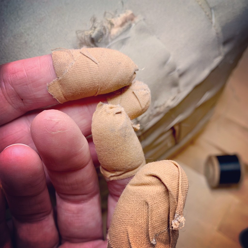 The physical act of manipulating the cloth, of forming the cubes with fabric and thread, the very visceral act of brutish stitching, brought into focus the costs represented within this waste.