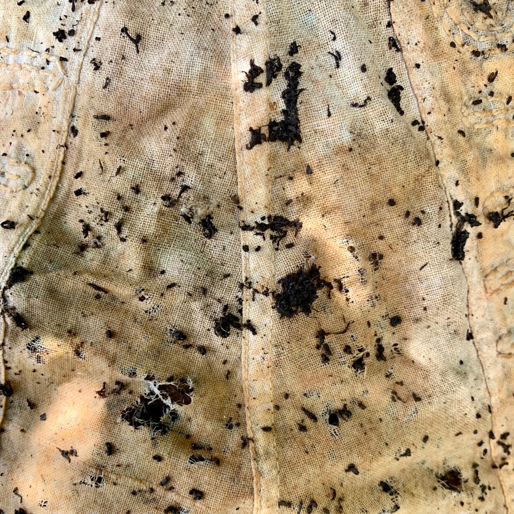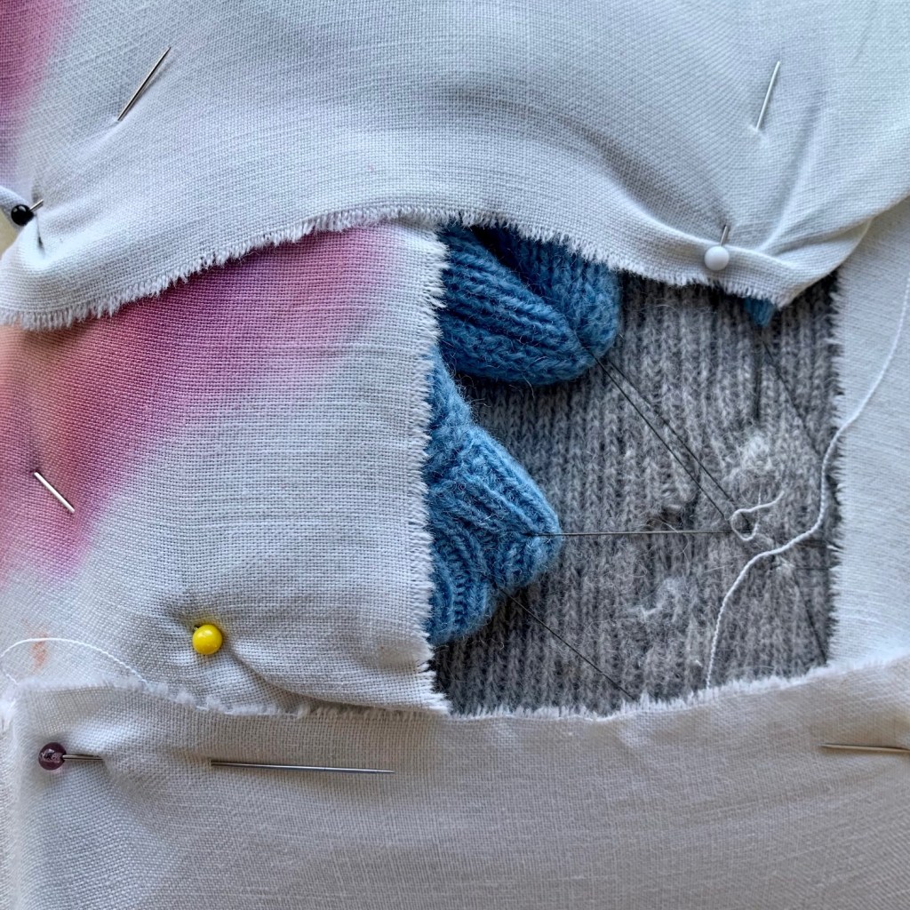 I worked through old sheets which were past repair, some of my husband’s very worn work trousers, a few vintage motheaten pieces that I bought or was given for the Motheaten Hierarchies project in 2020.