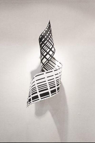 Her work, through weaving, explores rhythm, repetition, links, and spatial relationships between structures and space. She explores the rhythm of repetition and pattern, complex colour contrasts, textured surfaces, and the feel of the materials moving in her hand. She is inspired by her experiences, social issues, and natural phenomena.