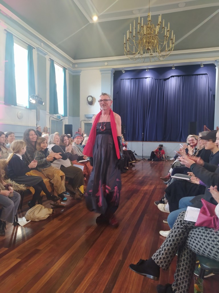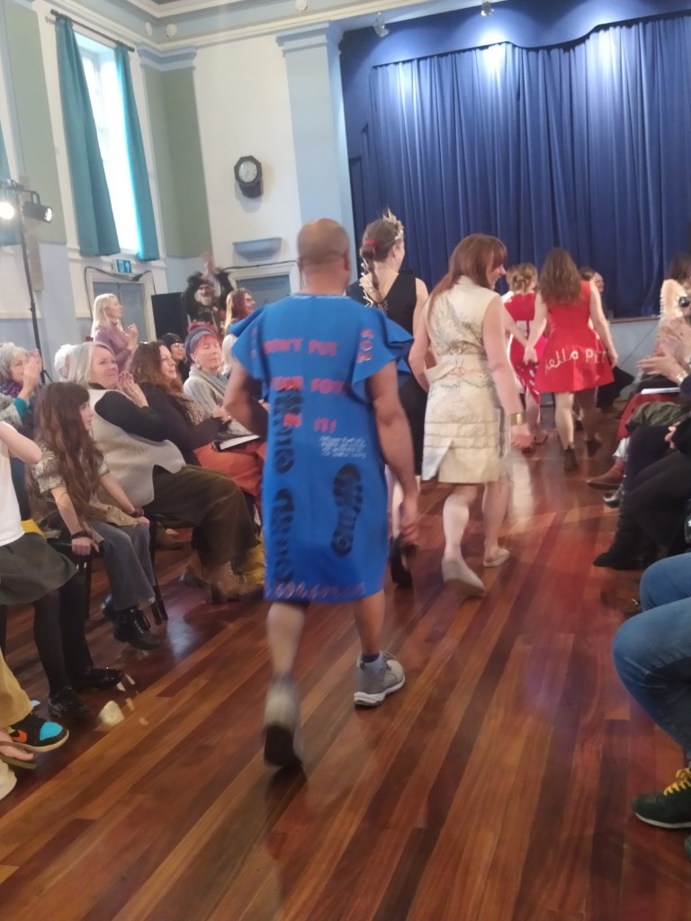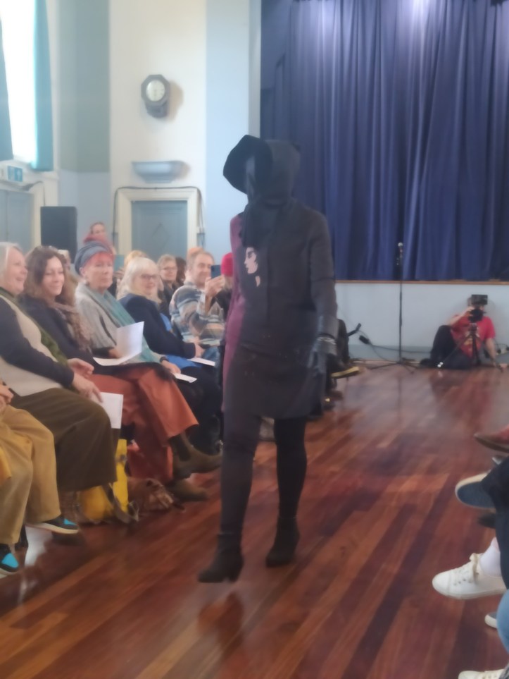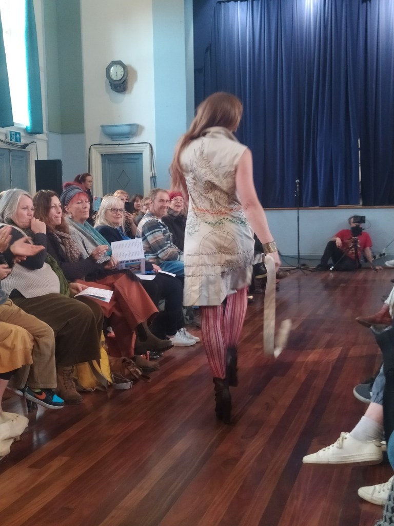The day arrived and all was set up at Glastonbury Town Hall for the inaugural show. What a spectacle – the models were amazing and embraced the event. There was music, poetry, rapping, dancing and so much more.