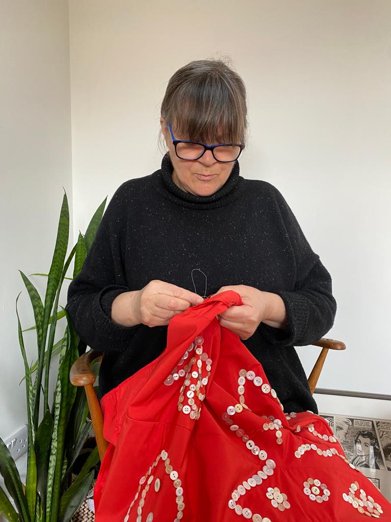 Jane’s garment was a Valentino dress and her design was based on the Pearly King.