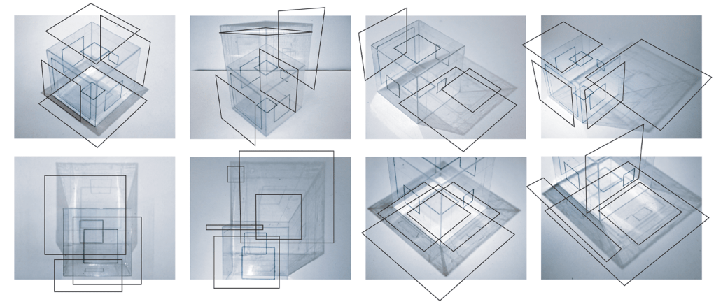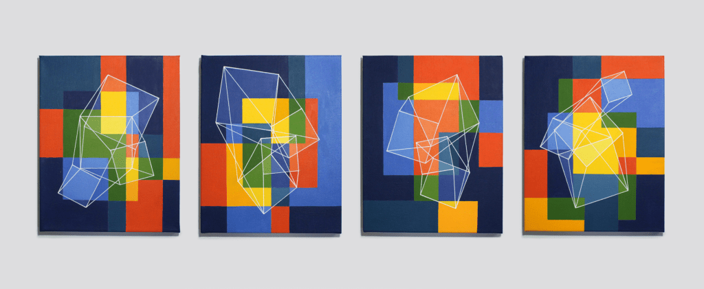 I delve into the interplay of various materials and unique textures, choreographing a rhythmic pattern through geometric images and accentuating the narrative through strategic colour contrasts. Further exploration involves the study of images transformed or generated through iteration and superposition, delving into the intricate relationship between structure and space.
