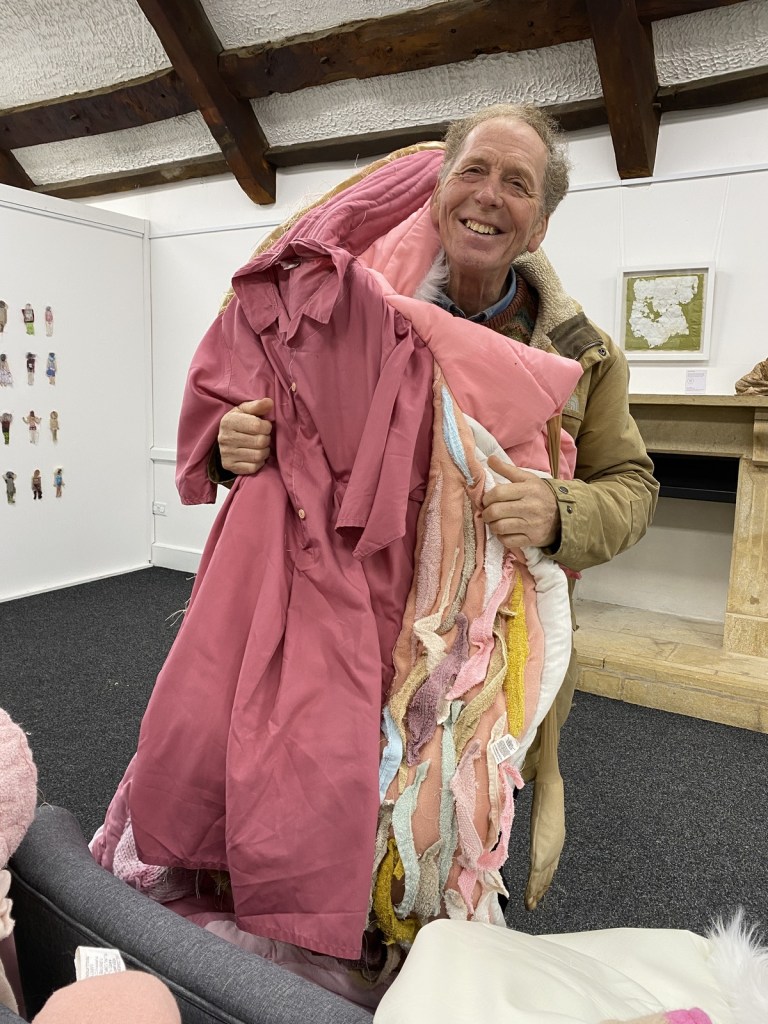 I have been thrilled to be able to exhibit my Transitional objects twice so far as part of seam collective’s A Visible THREAD touring exhibition. My touchable sculptures had their first outing at ACEArts in Somerton in December 2022 and then toured to The Fine Foundation Gallery at Durlston Country Park in Swanage, in May 2023. The images of visitors interacting with the sculptures evidence the curiosity and delight that many people experience when they realise they are allowed to touch my sculptures. However, comments from other people highlight their reticence and uncertainties about what it is they’re touching!