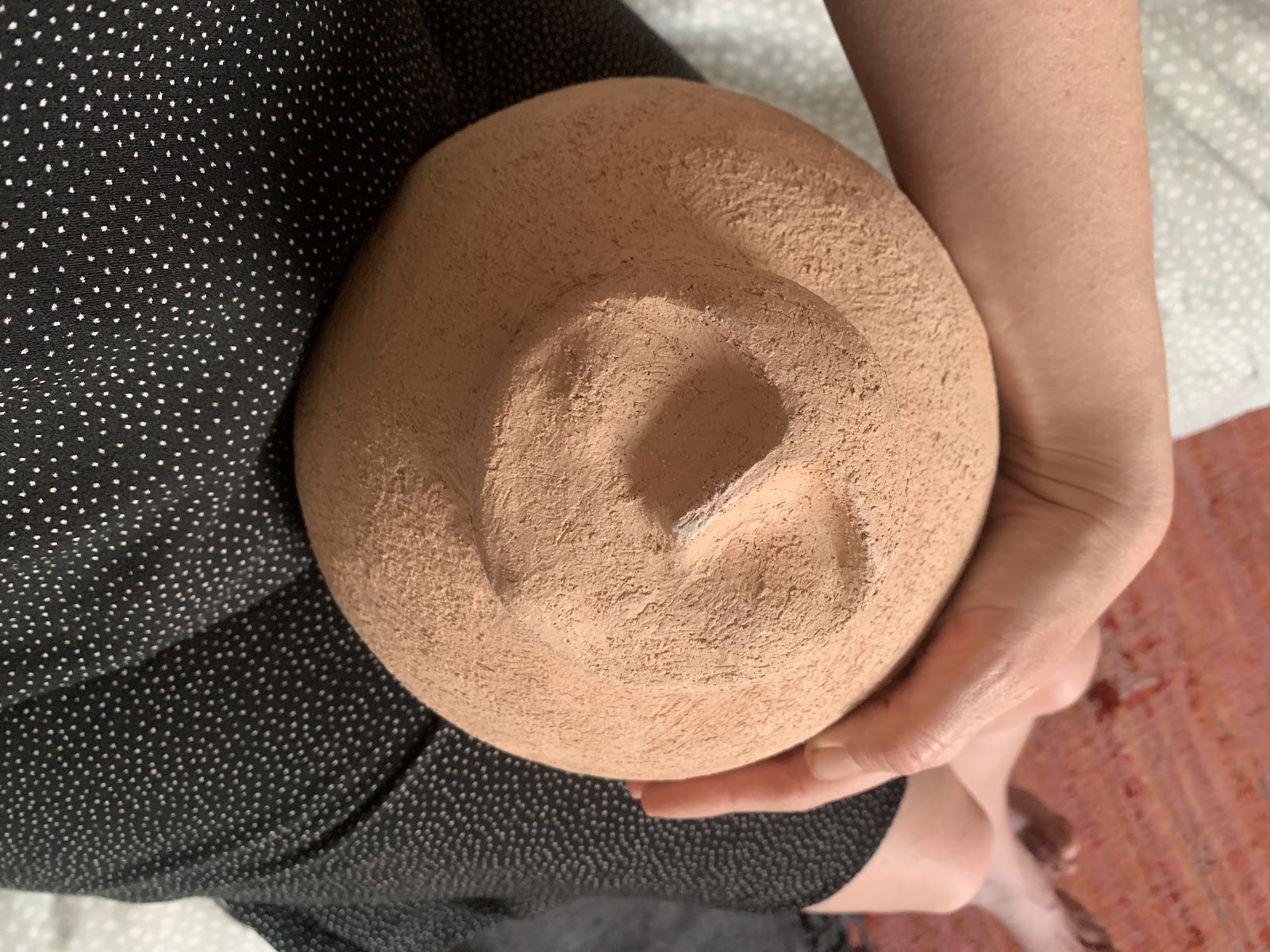 The vessels I made with Thelma Hulbert Gallery in sight were round and ‘full’. I had been thinking about the sun, and moon and water and how I might represent a cosmology of nurturance in these vessels. I made the bases totally spherical, in order to make them movable, flexible, and sitting them on shallow bowls designed to support them and receive any water that drained from them. The fullness of the vessels – recalled unexpectedly, my own once pregnant body, once full of waters. The hydrollas felt protective. They fed. They offered. I started shaping lids with faces. I started to think of the vessels as guardians or stewards of the plants. As Mothers.