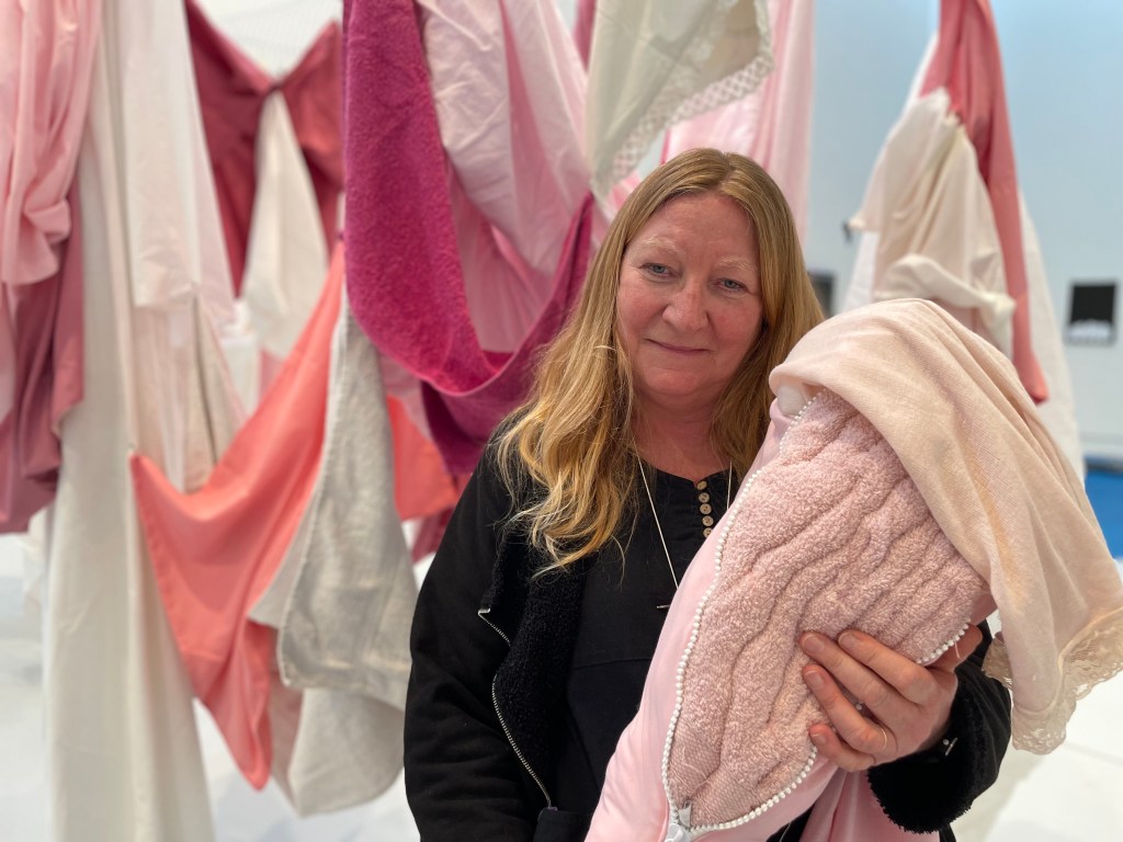 Lou will experiment with ways to install some of her hanging sculptures, including two new bodies of knitted work. She will use various hanging devices so that she can trial immersive environments. She will also be stitching in the gallery, developing a new sculptural installation using a collection of sheets and towels that belonged to her parents. She will be making subversive sculptures alongside visitors as part of ‘permission to play’.