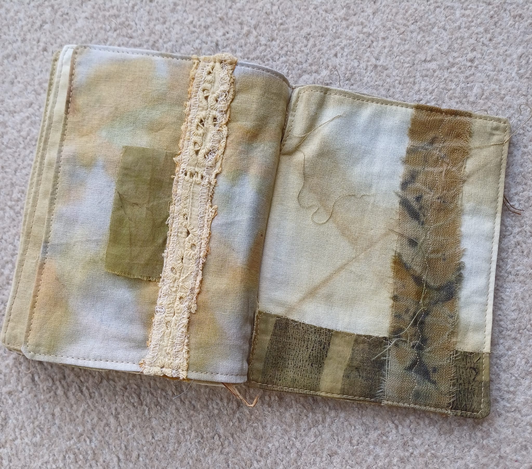 Quite a few of the seam artists each made a page for a collaborative textiles book, using their chosen materials and processes. This was exhibited as a touchable book at our final iteration of A Visible THREAD at Thelma Hulbert Gallery.