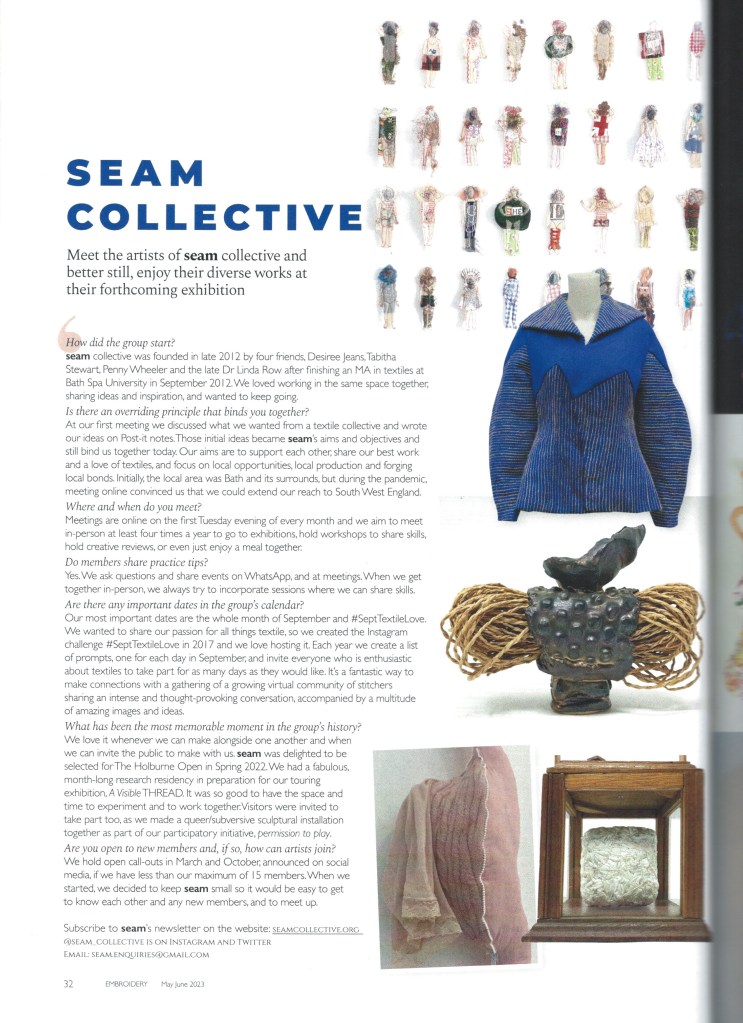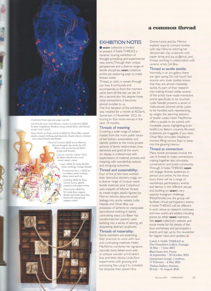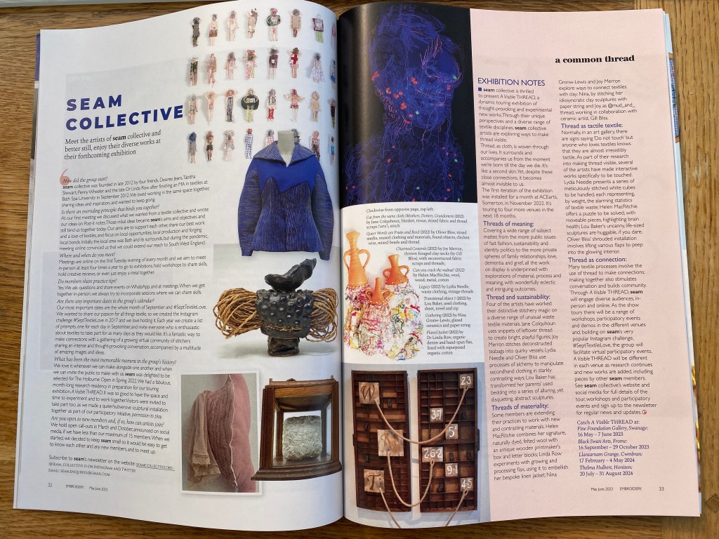 May/June 2023: Thank you too to Claire Waring, editor of Embroidery Magazine, for this excellent article and review of seam‘s A Visible THREAD tour.