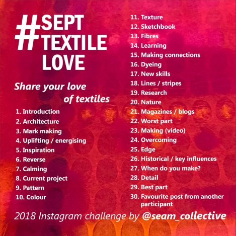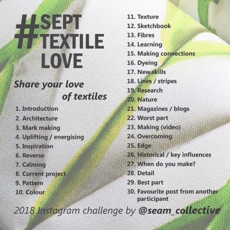 What makes #SeptTextileLove standout is the feedback from seam, each day we choose three posts to highlight from the day’s prompt, and the interaction between participants, culminating in the last prompt which is always ‘Your favourite post from another participant’.
