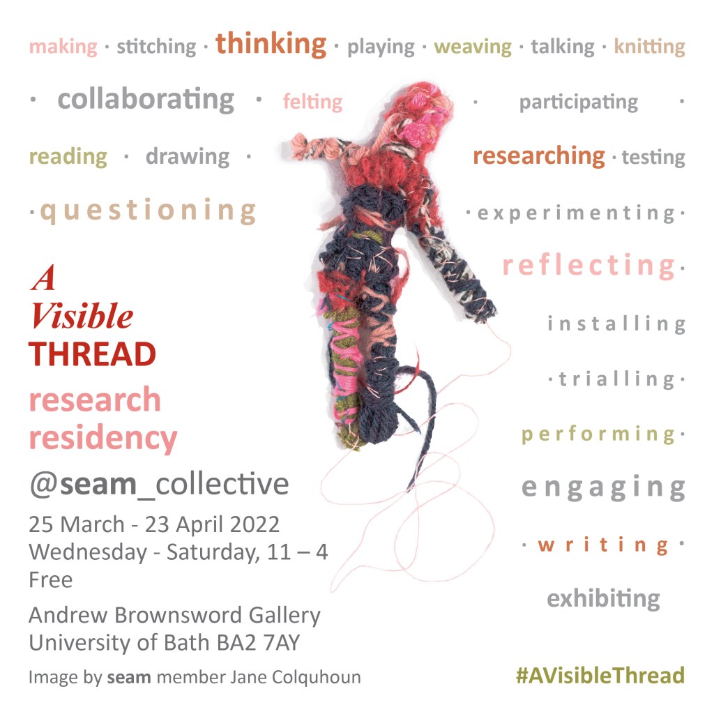 seam collective was selected to exhibit at The Andrew Brownsword Gallery at the University of Bath as part of a new experimental, open submission arts programme in partnership with The Holburne Museum, The Holburne Open. The collective was in residence for almost a month from 25 March-23 April 2022 and they they used the gallery as a test space to explore ideas for their proposed touring exhibition A Visible THREAD.