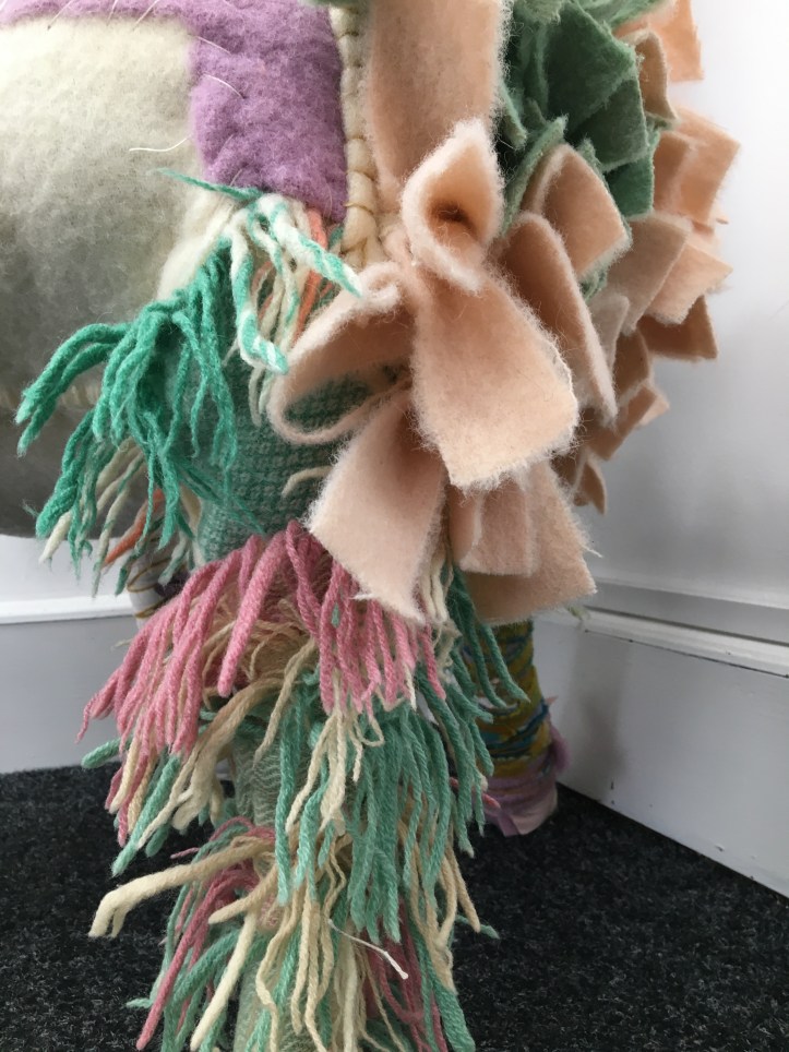 ‘My contribution to Warped and Wasted draws on years of collecting discarded, second-hand, and natural materials – motheaten blankets, hessian, scrap clothes, and natural fibres from small-scale producers. This project transforms my long-held stash into tactile, sculptural works that invite reflection and interaction. The stash itself becomes a central theme: a symbol of personal resourcefulness but also of excess, consumption, and the impulse to hoard in the name of creativity. These hidden accumulations, often passed on or abandoned, echo wider issues of waste, legacy, and the material remnants we all leave behind.’